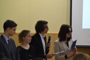 A verseny 13:30-kor kezdődött, de vendégeinkkel már előbb is találkozhattunk. Miután a résztvevők kihúzták a sorszámaikat elkezdődött a verseny. Először Hajós Éva igazgató asszony köszöntő beszédét majd a műsorvezetők ismertették a verseny folyamatát. A zsűritagok között üdvözölhettük Tóth Teodórát, aki évek óta zsűritagjaink között vállal szerepet, Tóthné Kormos Zsuzsannát a Baka János Általános Iskolából, Horváth Editet a Kaposvári Csokonai Vitéz Mihály Általános Iskola, Gimnázium és Szakgimnáziumból, Dr. Mikóné Csősz Juditot az I.Béla Gimnáziumból. A versenyen 15 diák vett részt.