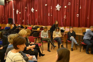 A verseny első felében a versenyzőknek egy 45 perces fogalmazást kellet írni egy megadott témából. Amíg a diákok megírják az írásbelit addig tanáraik Dr. Mikóné Csősz Judit tanárnővel, aki egy rövidebb előadást adott a versenyre való készülésről és tanácsokkal látta el a többi tanárt.
