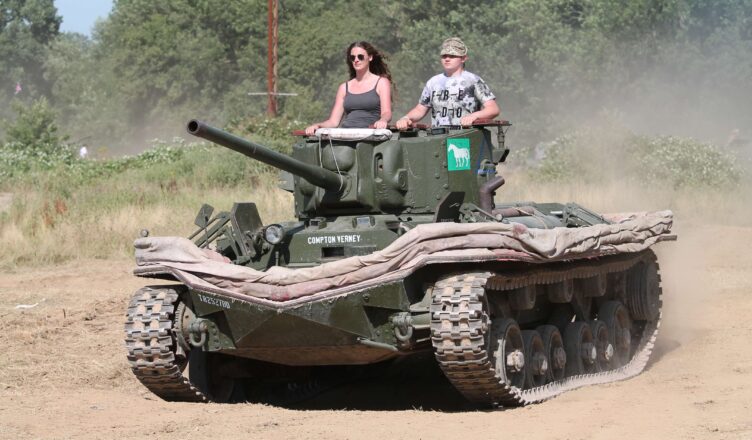 A nyitóképen az angol II. világháborús Valentine harckocsi látható, rajta egy boldog párral.
