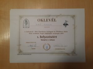 - helyezett Vili Bertold 8. osztály – Felkészítő tanár: Rácz Nóra (Baka Iskola)