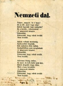 Még a kávéházban Petőfi bemutatta a Nemzeti dal című költeményét, ami hazafiasságra ösztönzi a magyar népet és megfogalmazták a 12 pontot. A kávéházból elindultak, hogy összegyűjtsék az egyetem hallgatóit. A Landerer nyomdához, Petőfi vezetésével már közel kétezres tömeg vonult végig Pest utcáin. Az ifjúság vezetői lefoglalták a nyomdagépeket és cenzúrátlanul nyomtatták a Nemzeti dalt és a 12 pontot.