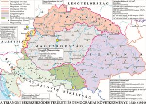 A trianoni békeszerződés, amelyet 1920. június 4-én írtak alá a versailles-i Trianon kastélyban, Magyarország számára hatalmas veszteséget jelentett. Az első világháború lezárásaként megkötött szerződés drámai területi és demográfiai változásokat hozott az ország számára. Magyarország területe több mint kétharmadával csökkent, elveszítve többek között Erdélyt, Felvidéket és a Délvidéket. E területek a szomszédos országokhoz kerültek, így Romániához, Csehszlovákiához, Jugoszláviához és Ausztriához. A lakosság mintegy harmada, több mint hárommillió magyar, hirtelen idegen országok polgára lett.