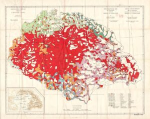 Vörös térkép, gróf Teleki Pál készítette. Bemutatja a Kárpát-medence nemzetiségeinek elhelyezkedését a XX. század elején. Vörös színnel a magyarságot ábrázolja.