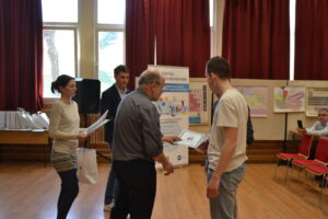 Mindeközben a középiskolások is regisztráltak a versenyre, és előkészítettek a kísérleteikhez való szükséges alapanyagokat és eszközöket. Ezután következett a verseny hivatalos megnyitója, ahol a köszöntő beszédeket is meghallgattuk. A megnyitó után elérkezett az általános iskolások eredményhirdetése. Eredményhirdetés végeztével a középiskolások kémiai kísérletei következtek. Sok érdekes, látványos és hangos kísérletet láthattunk.