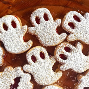 - Miután kihűltek, a kiszúrt sütiket meghintjük porcukorral (ez lesz felül), az alsó részt pedig megkenjük lekvárral, és rányomunk egy hozzá passzoló porcukros felsőt.