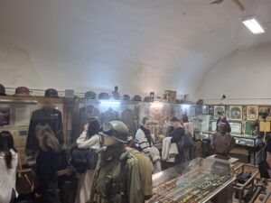 A 12. évfolyamos emelt történelem szakos csoportunk október 10-én járt a múzeumban, ahol sok érdekes információt tudhattunk meg a kiállításról és a magáról a háború egészéről. A tárlatvezetést Tálosi Zoltán vezette, aki egyben a tulajdonosa is a múzeumként szolgáló magángyűjteménynek. Tálosi úr által megismerhettük a gyűjtemény történetét és keletkezését is. Láthattunk számos I. és II. világháborús lőfegyvert, kitüntetéseket, tiszti egyenruhákat, harckocsi-lőszereket és még számos háborús kelléket, amiknek az eredetét is megismerhettük. A múzeum minden szombaton 9-13 óra között ingyenesen bárki számára nyitva áll. Akit érdekel a téma, annak én nagyon szívesen ajánlom, mert egy páratlan alkalom arra, hogy az ember megismerje a háború menetét és eszközeit.